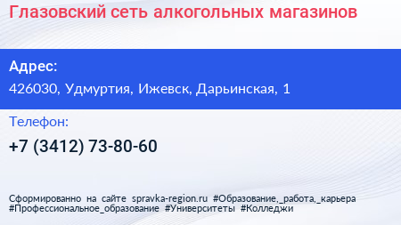 Глазовский, сеть алкогольных магазинов по адресу 426030, Удмуртия, Ижевск, Дарьинская, 1 в дальнейшем Организация, размещена в следующих категориях: