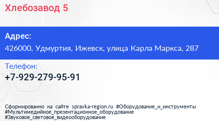 Хлебозавод №5 по адресу 426000, Удмуртия, Ижевск, улица Карла Маркса, 287 в дальнейшем Организация, размещена в следующих категориях: