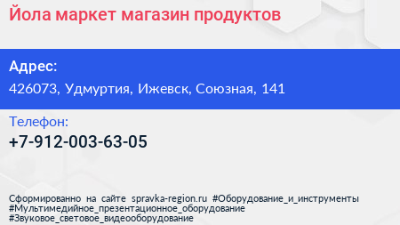 Йола-маркет, магазин продуктов по адресу 426073, Удмуртия, Ижевск, Союзная, 141 в дальнейшем Организация, размещена в следующих категориях: