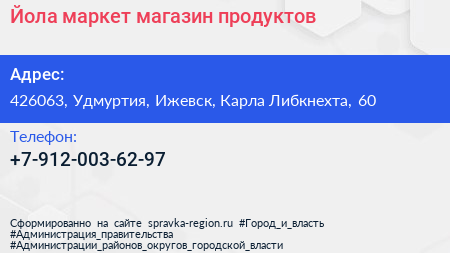 Йола-маркет, магазин продуктов по адресу 426063, Удмуртия, Ижевск, Карла Либкнехта, 60 в дальнейшем Организация, размещена в следующих категориях: