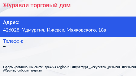 Журавли, торговый дом по адресу 426028, Удмуртия, Ижевск, Маяковского, 18в в дальнейшем Организация, размещена в следующих категориях: