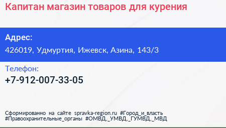 Капитан, магазин товаров для курения по адресу 426019, Удмуртия, Ижевск, Азина, 143/3 в дальнейшем Организация, размещена в следующих категориях: