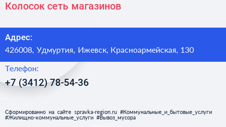 Колосок, сеть магазинов по адресу 426008, Удмуртия, Ижевск, Красноармейская, 130 в дальнейшем Организация, размещена в следующих категориях: