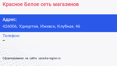 Красное & Белое, сеть магазинов по адресу 426006, Удмуртия, Ижевск, Клубная, 46 в дальнейшем Организация, размещена в следующих категориях: