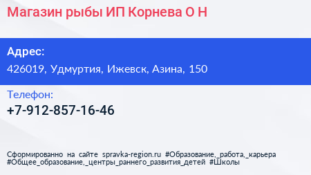Магазин рыбы, ИП Корнева О.Н. по адресу 426019, Удмуртия, Ижевск, Азина, 150 в дальнейшем Организация, размещена в следующих категориях: