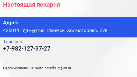 Настоящая пекарня по адресу 426011, Удмуртия, Ижевск, Холмогорова, 27в в дальнейшем Организация, размещена в следующих категориях: