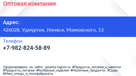 Оптовая компания по адресу 426028, Удмуртия, Ижевск, Маяковского, 13 в дальнейшем Организация, размещена в следующих категориях: