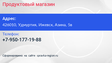 Продуктовый магазин по адресу 426010, Удмуртия, Ижевск, Азина, 5в в дальнейшем Организация, размещена в следующих категориях: