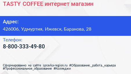 TASTY COFFEE, интернет-магазин по адресу 426006, Удмуртия, Ижевск, Баранова, 28 в дальнейшем Организация, размещена в следующих категориях:
