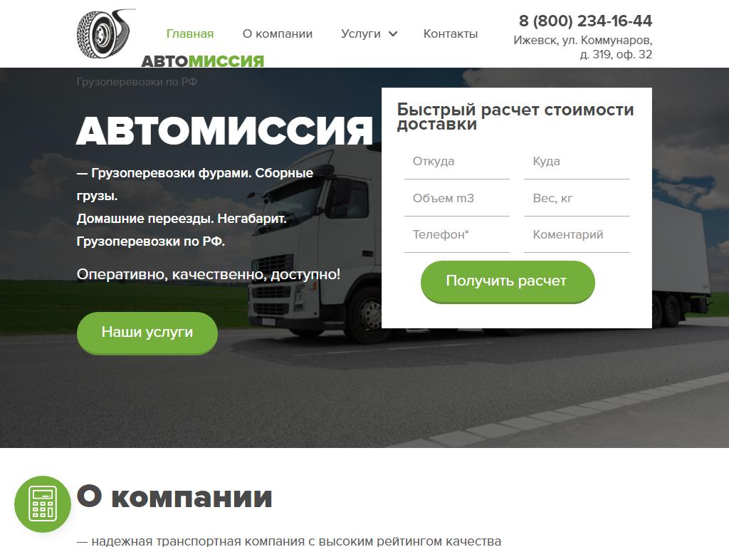АВТОМИССИЯ, транспортная компания по адресу 426008, Удмуртия, Ижевск, Коммунаров, 319 в дальнейшем Организация, размещена в следующих категориях: