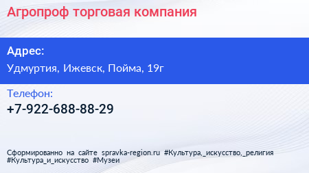 Агропроф, торговая компания по адресу Удмуртия, Ижевск, Пойма, 19г в дальнейшем Организация, размещена в следующих категориях: