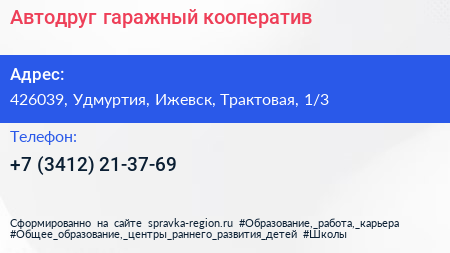 Автодруг, гаражный кооператив по адресу 426039, Удмуртия, Ижевск, Трактовая, 1/3 в дальнейшем Организация, размещена в следующих категориях:
