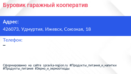 Буровик, гаражный кооператив по адресу 426073, Удмуртия, Ижевск, Союзная, 18 в дальнейшем Организация, размещена в следующих категориях: