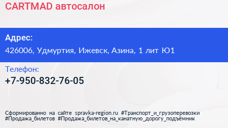 CARTMAD, автосалон по адресу 426006, Удмуртия, Ижевск, Азина, 1 лит Ю1 в дальнейшем Организация, размещена в следующих категориях: