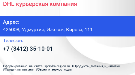 DHL, курьерская компания по адресу 426008, Удмуртия, Ижевск, Кирова, 111 в дальнейшем Организация, размещена в следующих категориях: