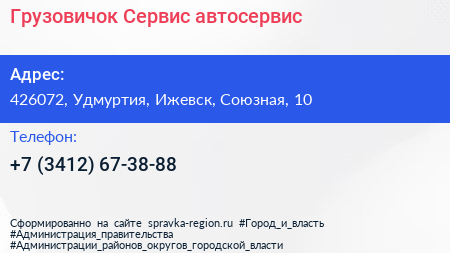 Грузовичок-Сервис, автосервис по адресу 426072, Удмуртия, Ижевск, Союзная, 10 в дальнейшем Организация, размещена в следующих категориях: