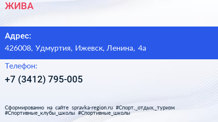 ЖИВА по адресу 426008, Удмуртия, Ижевск, Ленина, 4а в дальнейшем Организация, размещена в следующих категориях: