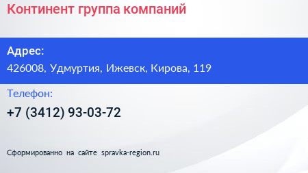 Континент, группа компаний по адресу 426008, Удмуртия, Ижевск, Кирова, 119 в дальнейшем Организация, размещена в следующих категориях: