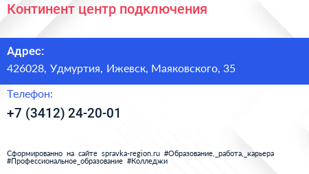 Континент, центр подключения по адресу 426028, Удмуртия, Ижевск, Маяковского, 35 в дальнейшем Организация, размещена в следующих категориях: