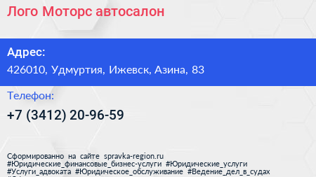 Лого Моторс, автосалон по адресу 426010, Удмуртия, Ижевск, Азина, 83 в дальнейшем Организация, размещена в следующих категориях: