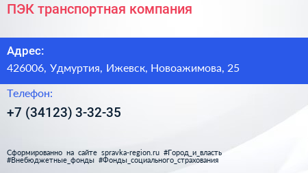 ПЭК, транспортная компания по адресу 426006, Удмуртия, Ижевск, Новоажимова, 25 в дальнейшем Организация, размещена в следующих категориях: