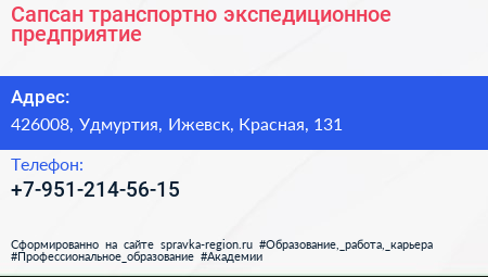 Сапсан, транспортно-экспедиционное предприятие по адресу 426008, Удмуртия, Ижевск, Красная, 131 в дальнейшем Организация, размещена в следующих категориях: