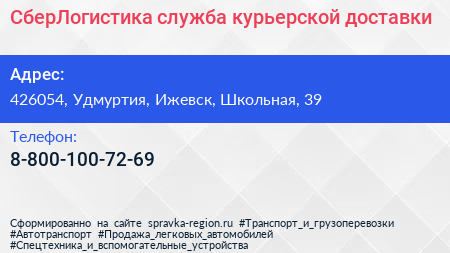СберЛогистика, служба курьерской доставки по адресу 426054, Удмуртия, Ижевск, Школьная, 39 в дальнейшем Организация, размещена в следующих категориях: