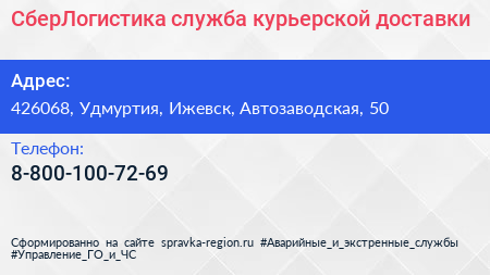 СберЛогистика, служба курьерской доставки по адресу 426068, Удмуртия, Ижевск, Автозаводская, 50 в дальнейшем Организация, размещена в следующих категориях: