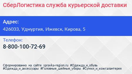 СберЛогистика, служба курьерской доставки по адресу 426033, Удмуртия, Ижевск, Кирова, 5 в дальнейшем Организация, размещена в следующих категориях: