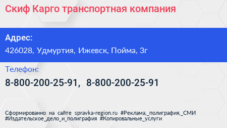 Скиф-Карго, транспортная компания по адресу 426028, Удмуртия, Ижевск, Пойма, 3г в дальнейшем Организация, размещена в следующих категориях: