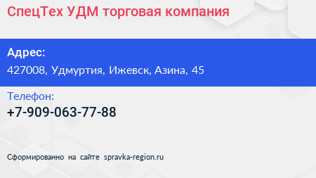 СпецТех-УДМ, торговая компания по адресу 427008, Удмуртия, Ижевск, Азина, 45 в дальнейшем Организация, размещена в следующих категориях: