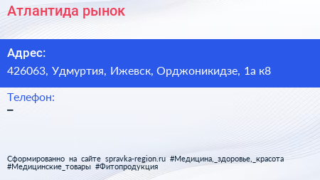 Атлантида, рынок по адресу 426063, Удмуртия, Ижевск, Орджоникидзе, 1а к8 в дальнейшем Организация, размещена в следующих категориях: