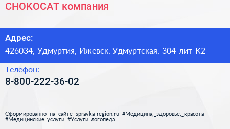 CHOKOCAT, компания по адресу 426034, Удмуртия, Ижевск, Удмуртская, 304 лит К2 в дальнейшем Организация, размещена в следующих категориях: