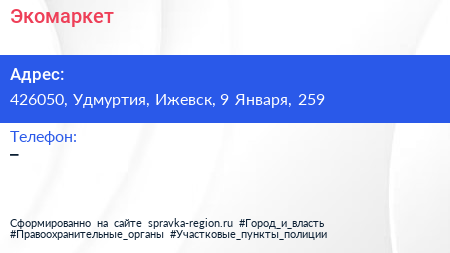 Экомаркет по адресу 426050, Удмуртия, Ижевск, 9 Января, 259 в дальнейшем Организация, размещена в следующих категориях: