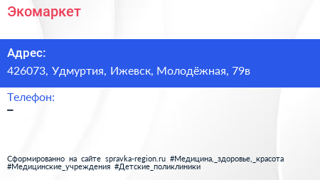 Экомаркет по адресу 426073, Удмуртия, Ижевск, Молодёжная, 79в в дальнейшем Организация, размещена в следующих категориях: