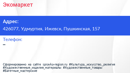 Экомаркет по адресу 426077, Удмуртия, Ижевск, Пушкинская, 157 в дальнейшем Организация, размещена в следующих категориях: