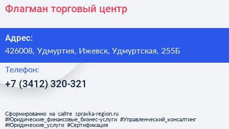 Флагман, торговый центр по адресу 426008, Удмуртия, Ижевск, Удмуртская, 255Б в дальнейшем Организация, размещена в следующих категориях: