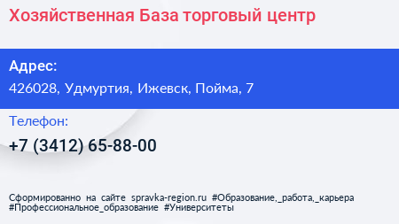 Хозяйственная База, торговый центр по адресу 426028, Удмуртия, Ижевск, Пойма, 7 в дальнейшем Организация, размещена в следующих категориях: