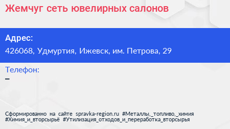 Жемчуг, сеть ювелирных салонов по адресу 426068, Удмуртия, Ижевск, им. Петрова, 29 в дальнейшем Организация, размещена в следующих категориях: