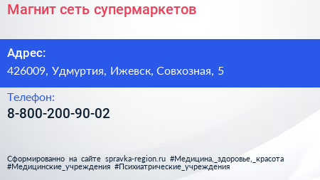 Магнит, сеть супермаркетов по адресу 426009, Удмуртия, Ижевск, Совхозная, 5 в дальнейшем Организация, размещена в следующих категориях: