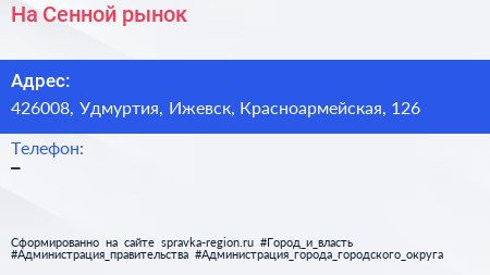 На Сенной, рынок по адресу 426008, Удмуртия, Ижевск, Красноармейская, 126 в дальнейшем Организация, размещена в следующих категориях: