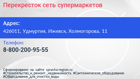 Перекресток, сеть супермаркетов по адресу 426011, Удмуртия, Ижевск, Холмогорова, 11 в дальнейшем Организация, размещена в следующих категориях: