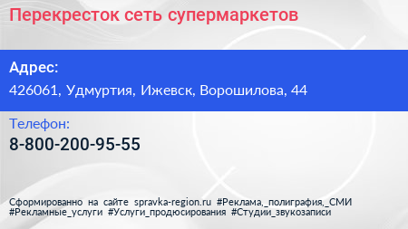 Перекресток, сеть супермаркетов по адресу 426061, Удмуртия, Ижевск, Ворошилова, 44 в дальнейшем Организация, размещена в следующих категориях: