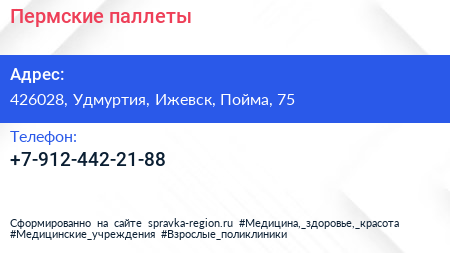 Пермские паллеты по адресу 426028, Удмуртия, Ижевск, Пойма, 75 в дальнейшем Организация, размещена в следующих категориях: