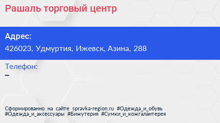 Рашаль, торговый центр по адресу 426023, Удмуртия, Ижевск, Азина, 288 в дальнейшем Организация, размещена в следующих категориях: