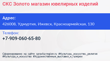 СКС Золото, магазин ювелирных изделий по адресу 426008, Удмуртия, Ижевск, Красноармейская, 130 в дальнейшем Организация, размещена в следующих категориях: