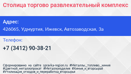 Столица, торгово-развлекательный комплекс по адресу 426065, Удмуртия, Ижевск, Автозаводская, 3а в дальнейшем Организация, размещена в следующих категориях: