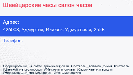 Швейцарские часы, салон часов по адресу 426008, Удмуртия, Ижевск, Удмуртская, 255Б в дальнейшем Организация, размещена в следующих категориях: