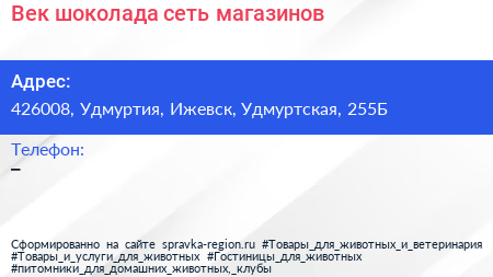 Век шоколада, сеть магазинов по адресу 426008, Удмуртия, Ижевск, Удмуртская, 255Б в дальнейшем Организация, размещена в следующих категориях: