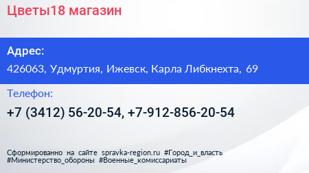 Цветы18, магазин по адресу 426063, Удмуртия, Ижевск, Карла Либкнехта, 69 в дальнейшем Организация, размещена в следующих категориях: